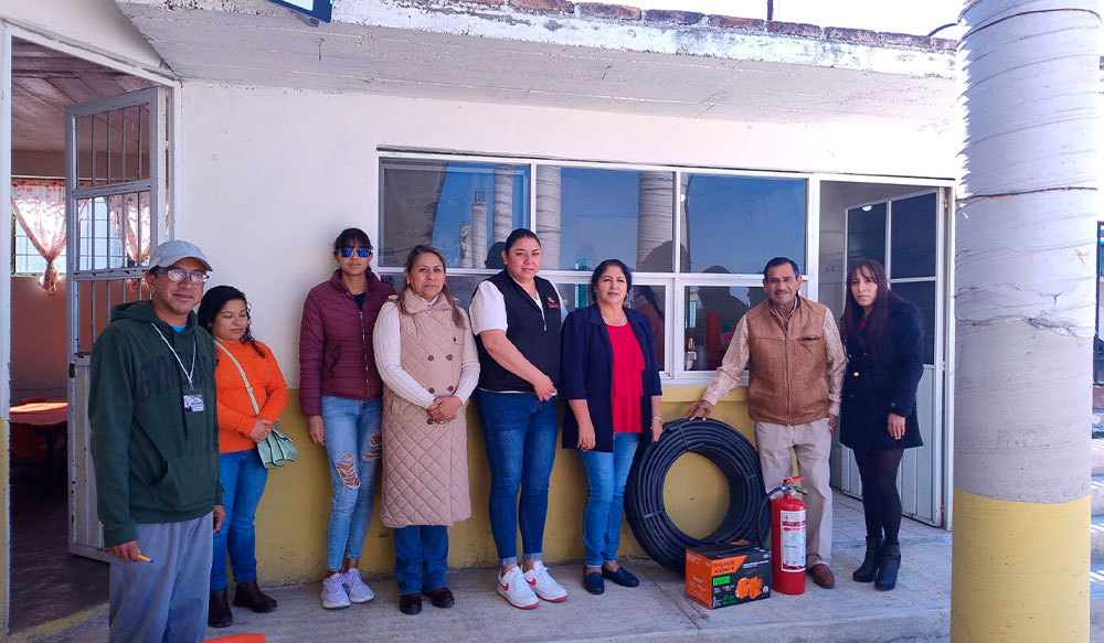Como parte de esta acción, se hizo entrega de equipo y materiales esenciales para fortalecer las condiciones del espacio, incluyendo un extintor, una bomba de agua, un rollo de manguera y un refrigerador.